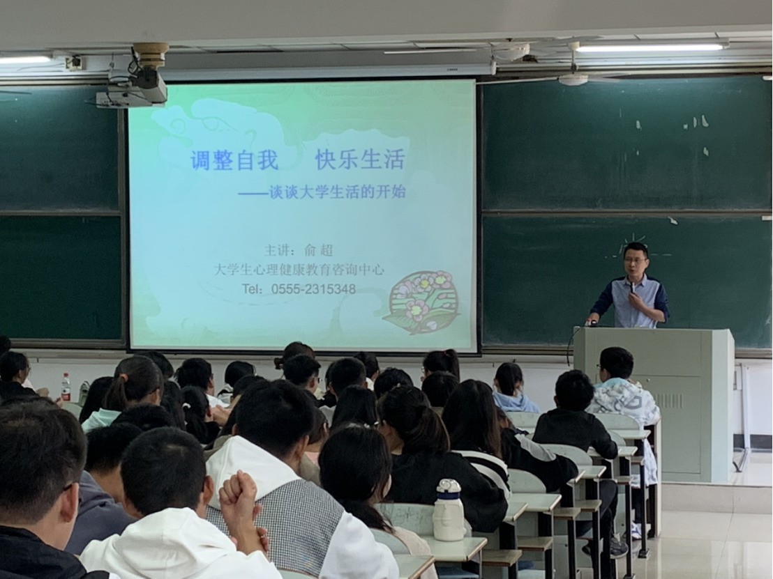 10月17日下午,足球直播360 在佳山校区教三南401举办新生入学适应心理讲座。校大学生心理健康教育咨询中心俞超老师应邀主讲,360体育直播 心理工作站站长朱圣兰老师主持,全体新生聆听此次讲座。