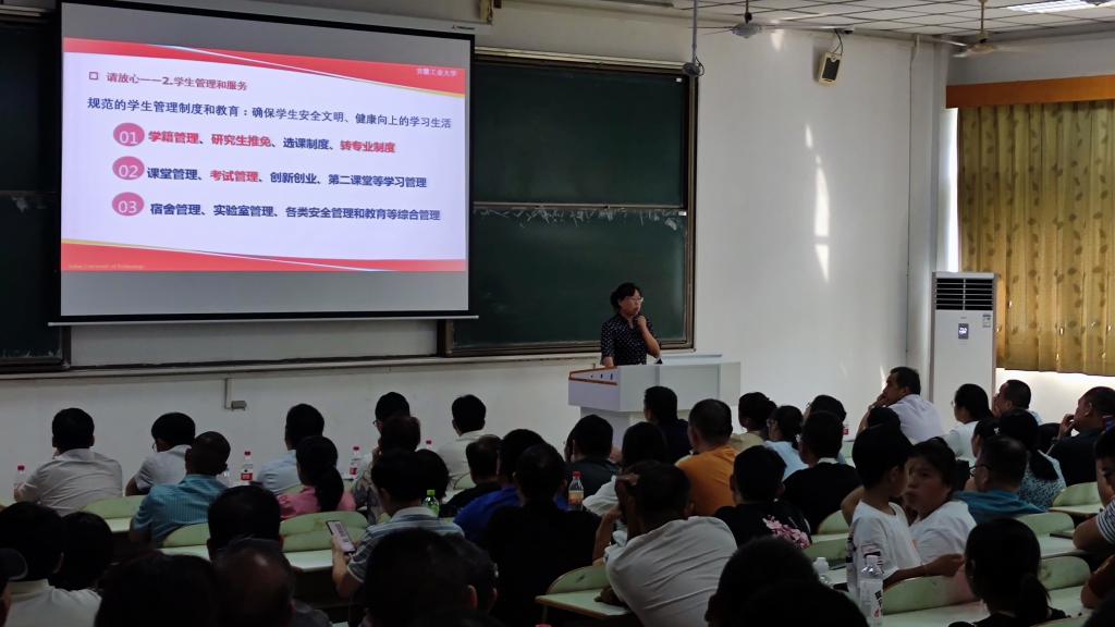 院党委副书记、纪委书记、副院长冀秀芝从“请放心、请协助、请期待”三个方面,介绍了足球直播360 的办学特色、学生管理和服务相关制度及足球直播360 近年考研就业情况。她希望能通过家校联动、师生互动等方式帮助新生筑牢遵规守纪的意识,严守安全底线,更快适应大学生活,共助学生在足球直播360 收获成长、收获进步、收获快乐。