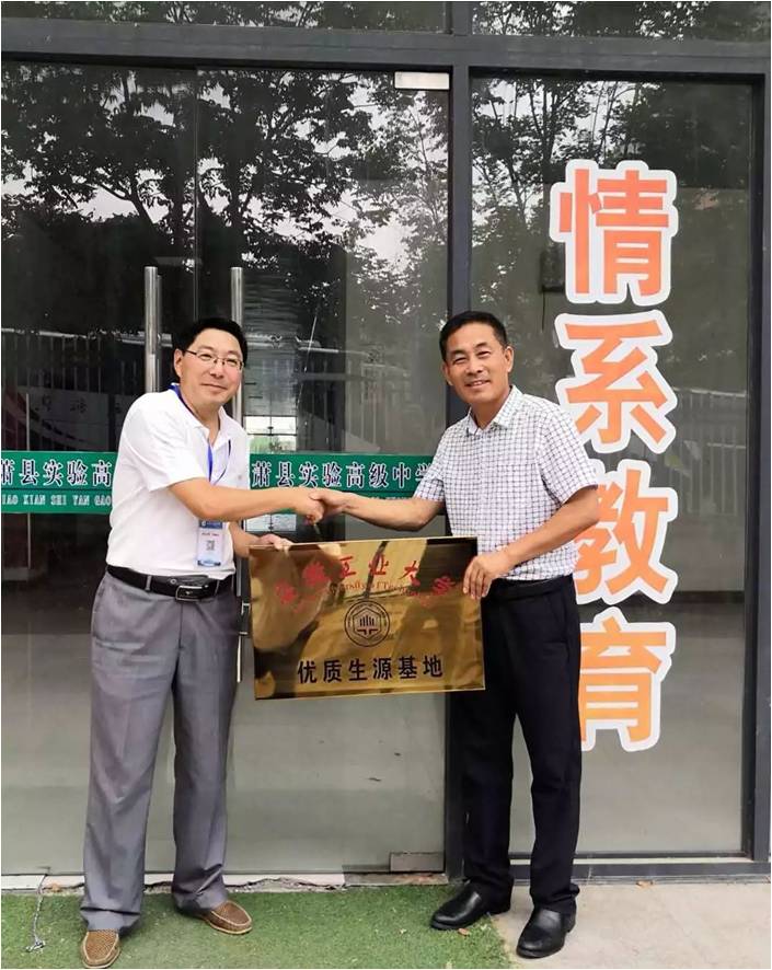招生宣传组走访了萧县实验高级中学,受到了校领导的热情接待,招生宣传组详细介绍了我校的基本情况、办学理念、学科优势、专业设置、人才培养、学生发展和招生政策,希望萧县实验高级中学今后为我校输送更多的优秀人才。双方一致认为,“优质生源基地”建设,顺应当前深化考试招生制度改革新形势,有利于构建校际之间的交流合作长效机制,有助于共同做好优秀人才的选拔和培养,实现合作共赢。随后,李晓东代表学校向萧县实验高级中学授予“优质生源基地”称号。
