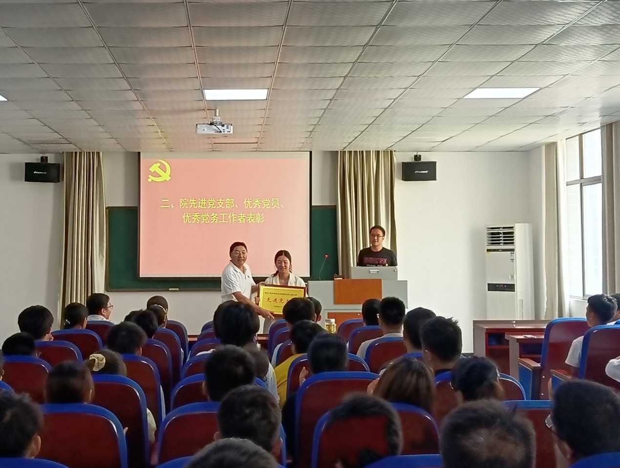 会议在奏唱《中华人民共和国国歌》中拉开帷幕。李晓东宣读了《关于表彰先进党支部、优秀共产党员、优秀党务工作者的通报》,并为获得表彰的院级先进党支部、院优秀共产党员、院优秀党务工作者颁奖。