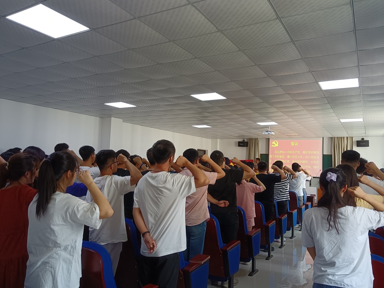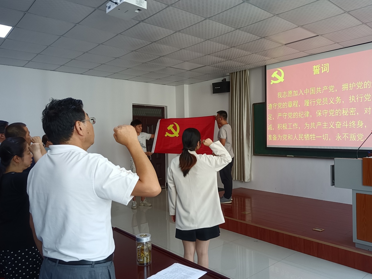 冀秀芝宣读了《关于焦思宇等72名党员发展的批复》。在贺淑蕊的带领下,举行新党员入党宣誓和老党员重温入党誓词仪式。