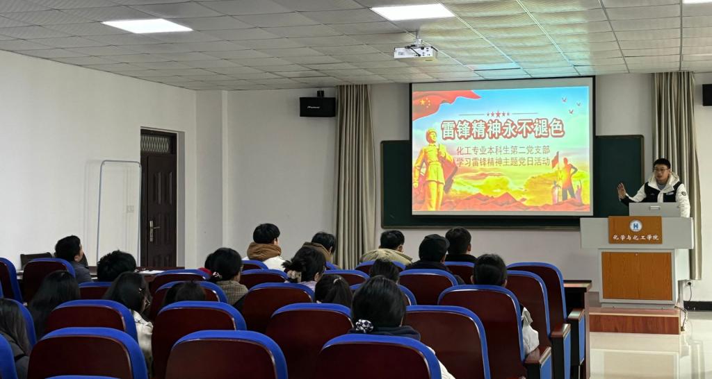 为深入学习贯彻习近平总书记对深入开展学雷锋活动作出的重要指示精神,引导支部党员树立崇高理想追求,践行社会主义核心价值观。2024年3月4日,在全国第61个“学雷锋纪念日”及第25个“中国青年志愿者服务日”来临之际,化工专业本科生第二党支部在化工楼开展了“传承雷锋精神,汲取青春力量”特色主题党日活动。