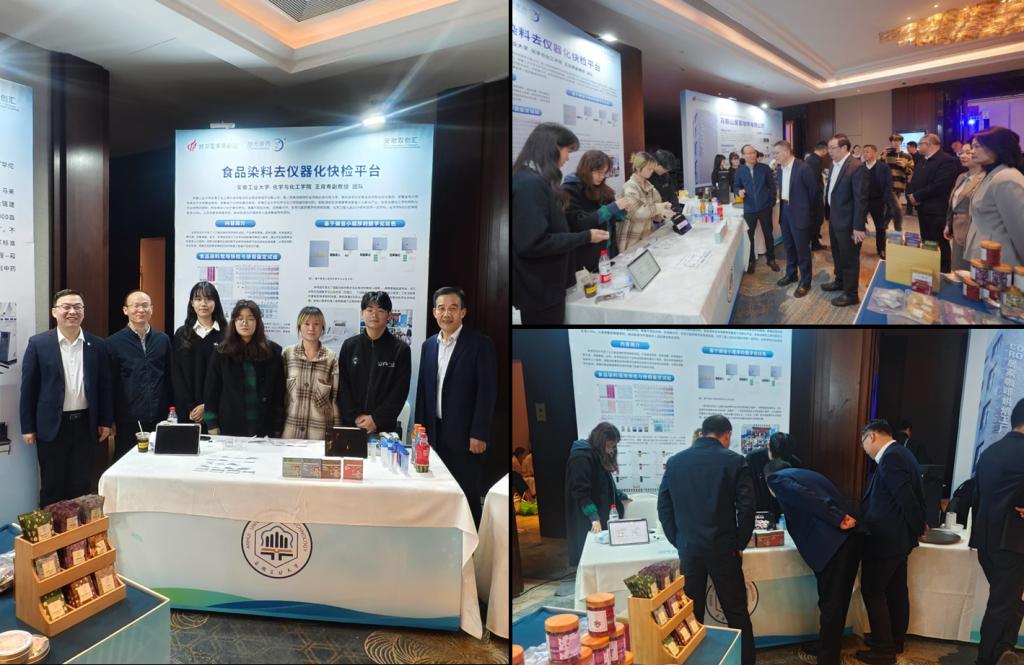 化学生物学与制药工程系王双寿副教授团队携其最新科研成果—食品染料去仪器化快检平台参加了项目展示,活动期间,中国科足球直播360 院士马大为、安徽工业大学副校长郑啸、安徽皓元医药有限公司董事长郑保富以及马鞍山市卫健委、马鞍山市医保局、慈湖高新区管委会等有关部门领导来到展台就食品安全快检产品进行了现场交流,王双寿副教授就快检产品的设计研发、使用方法、应用场景等方面进行了介绍,获得了各位领导和嘉宾的高度认可。(撰稿:王双寿;审核:韩新亚、黄宇弦)