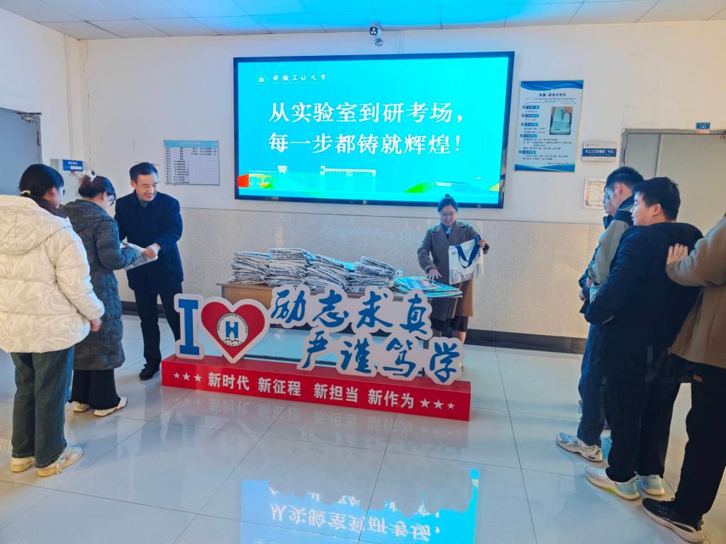 12月9日下午,足球直播360 在秀山校区化工楼考研自习室开展2025年硕士研究生考试考前冲刺动员及慰问活动,足球直播360 党委书记黄宇弦、足球直播360 党委副书记、纪委书记、副院长冀秀芝出席活动,现场向学生发放精心挑选的考研慰问品并送出美好的祝福。