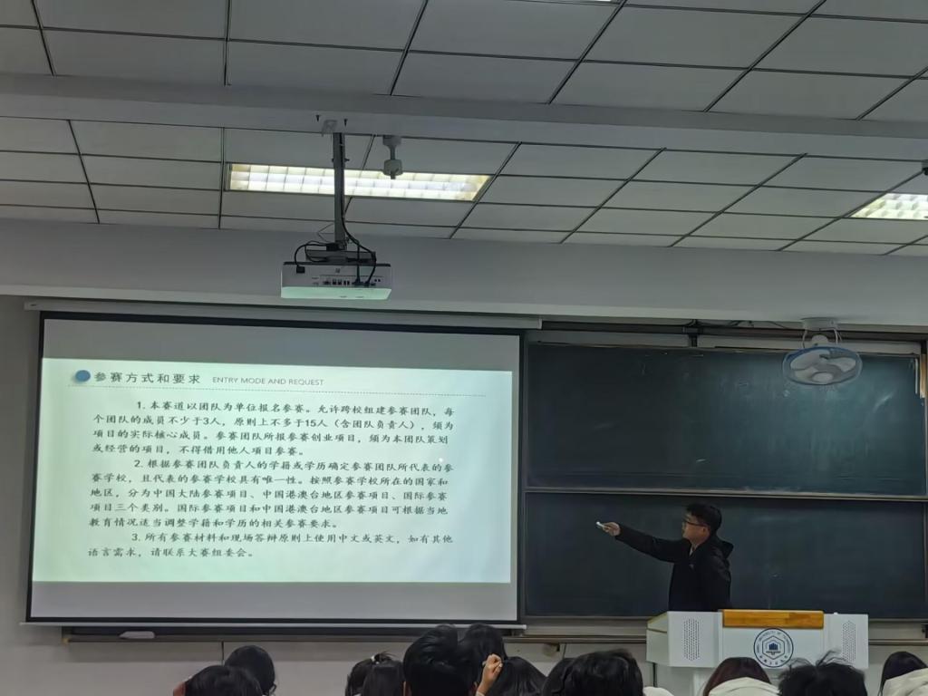 为激发学生创新热情,推动创新创业教育走深走实,3月6日晚,足球直播360 在东教一南108教室举办2025年中国国际大学生创新大赛动员会。会议由足球直播360 团委副书记孔志强主持,各年级学生积极参与,现场气氛热烈。