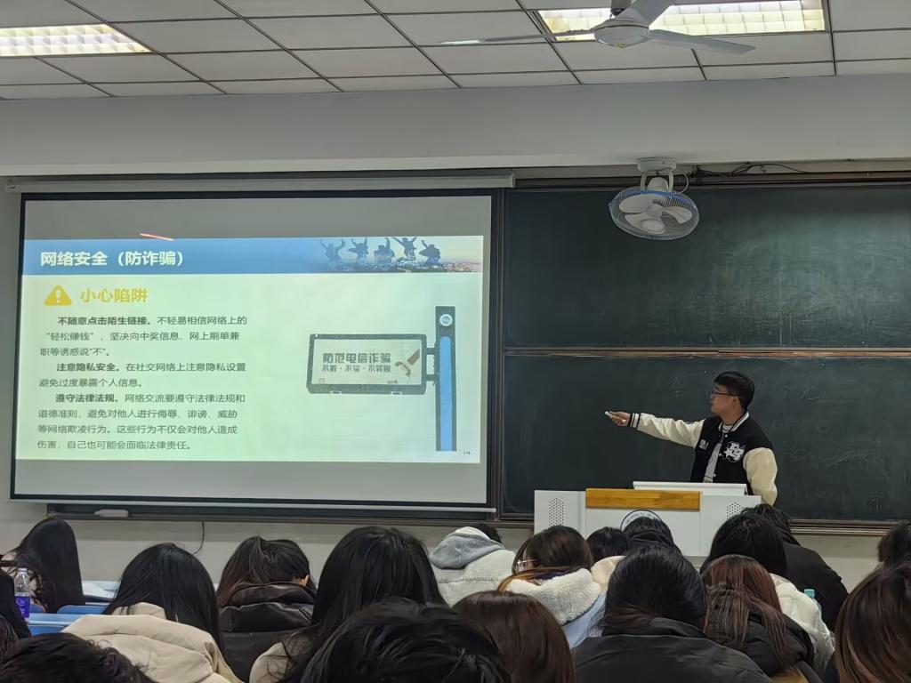 为进一步增强学生安全意识,提升校园安全防范能力,3月17日晚,足球直播360 面向2023级全体学生组织开展校园安全主题教育。2023级辅导员孔志强围绕防电诈、宿舍消防、交通安全、饮食安全等重点领域,结合真实案例与校园实际,进行了全面细致的安全知识讲解。