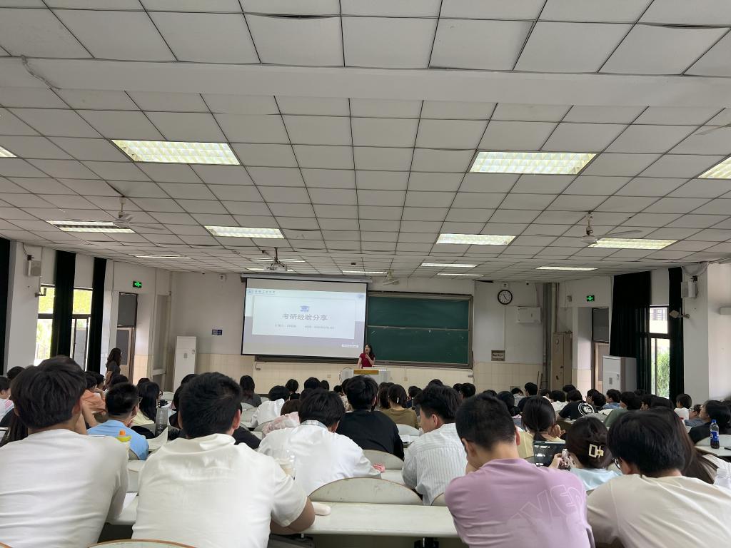 随后,11位2021级成功上岸的学长学姐走上讲台,结合自身经历,分享了考研过程中的宝贵经验。他们从择校经验、复习规划、时间管理、心态调整到专业课学习和公共课备考,毫无保留地为学弟学妹们提供了实用的建议。学长学姐们的分享生动具体,既有成功的经验,也有教训的总结,让在场的同学深受启发。其间,交流互动环节,同学们积极踊跃地提问,学长学姐们周到细致地解答,现场气氛热烈。