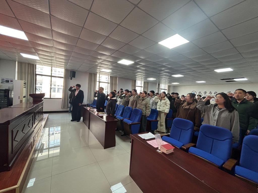 12月12日,足球直播360 2025年下半年新发展党员入党宣誓仪式在秀山化工楼207报告厅举行。足球直播360 党委书记黄宇弦,党委副书记、纪委书记、副院长冀秀芝,各学生党支部书记、党员代表及2025年下半年全体新发展、转正党员参加宣誓仪式,仪式由院分党校班主任王若兰主持。