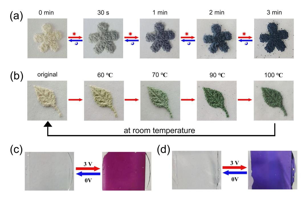 近年来,能够对外部刺激(例如光照、温度、电场、磁场、pH值和压力等)进行响应的变色材料引起了广泛关注。这些变色材料在智能窗户、电子显示器、存储设备、光学开关和化学传感器等方面有较好应用前景。目前已经报道的刺激响应变色材料,大多数仅可以对单个或两个外部刺激产生响应,对于具有多重刺激响应变色行为的材料的研究还相对有限。然而,某些特定的应用,如多重防伪和多层级信息加密,则要求同一材料能够响应三种或更多种外界刺激而产生变色。因此将多个官能团整合到同一个化合物中并构建多重刺激响应的变色材料仍然具有挑战性。
