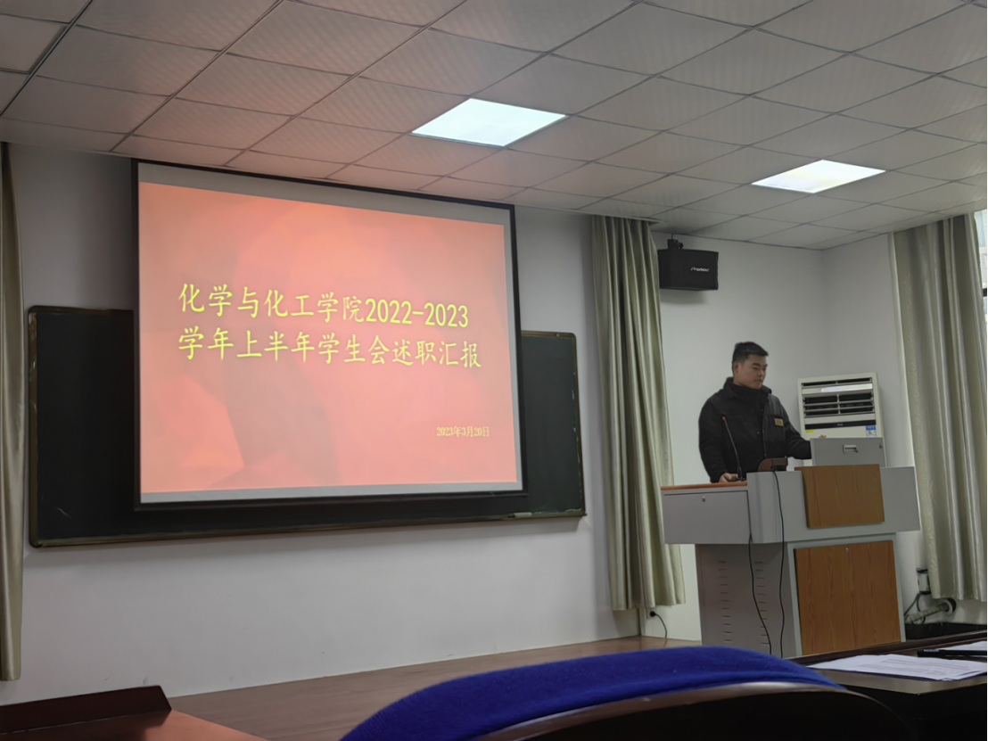 化工足球直播360 于3月20日下午在秀山校区化工楼南207报告厅召开2022-2023学年第一学期学生组织工作人员述职评议会。院党委副书记、副院长冀秀芝,院团委书记唐志强、各年级辅导员、学生代表以及院团委学生会全体成员参加此次评议会。