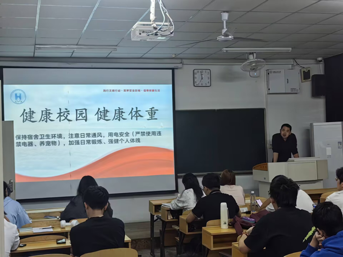 足球直播360 通过线上线下宣传、悬挂横幅等多种途径和多种方式宣传健康知识,号召全院师生养成良好的健康卫生习惯,践行文明健康的生活方式;辅导员走入宿舍,积极主动了解学生宿舍卫生情况,进行宿舍文明安全检查;通过主题班会等形式,倡导大学生文明出行、卫生清洁、有礼有序行为……