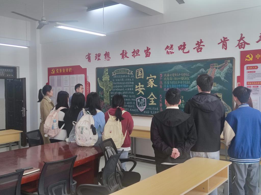 会后,支部学生党员在化工南楼党员活动室参观了“国家安全教育日”四月主题黑板报,并表示将切实发挥党员的先锋模范作用,做好国家安全的坚定守护者。(撰稿:李冰心;审核:冀秀芝)