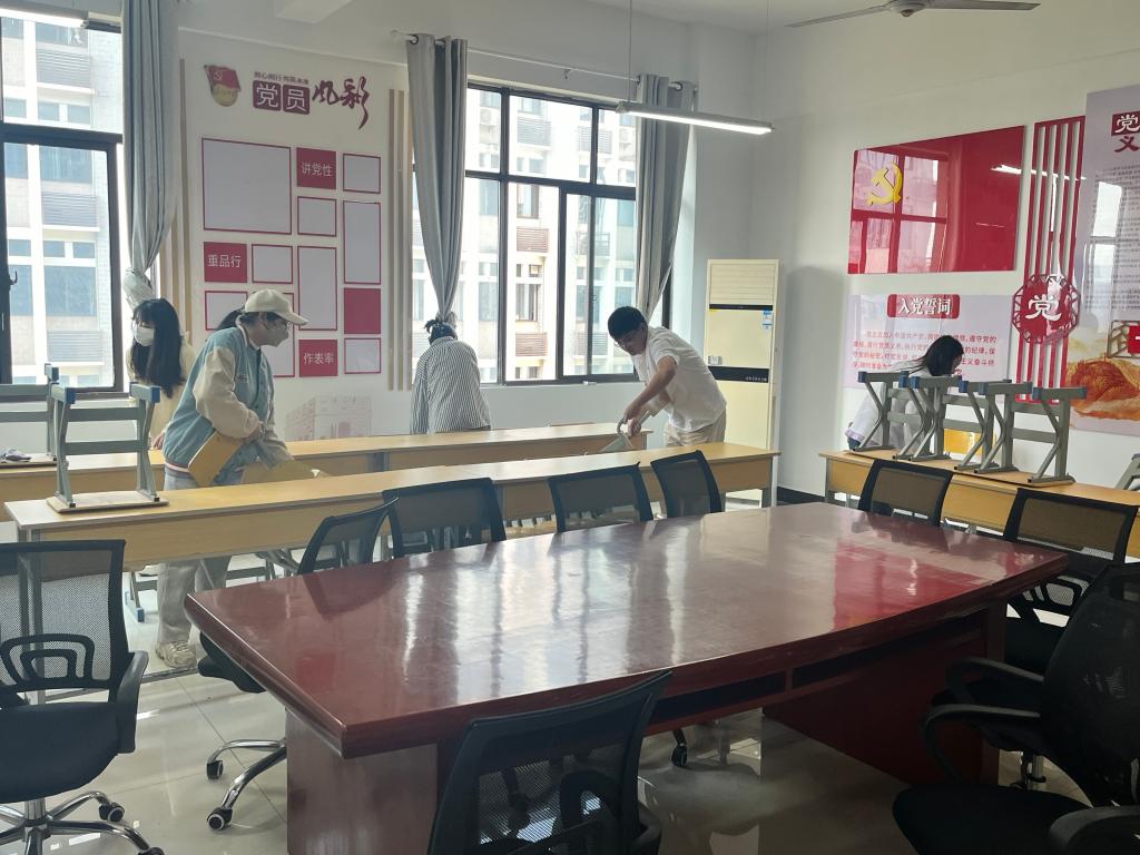活动前,支部对三个公共自习室的整理进行了分工,提前向毕业班同学发布了通知,提醒同学们提前整理好个人物品。活动中,支部党员集中整理了自习室的桌椅、书籍,清理了垃圾,并对自习室的安全隐患进行了排查。所有党员表现积极,尽心尽责,清理后考研自习室焕然一新,这也是学生劳动教育宣传周里一次很有意义的劳动教育课。