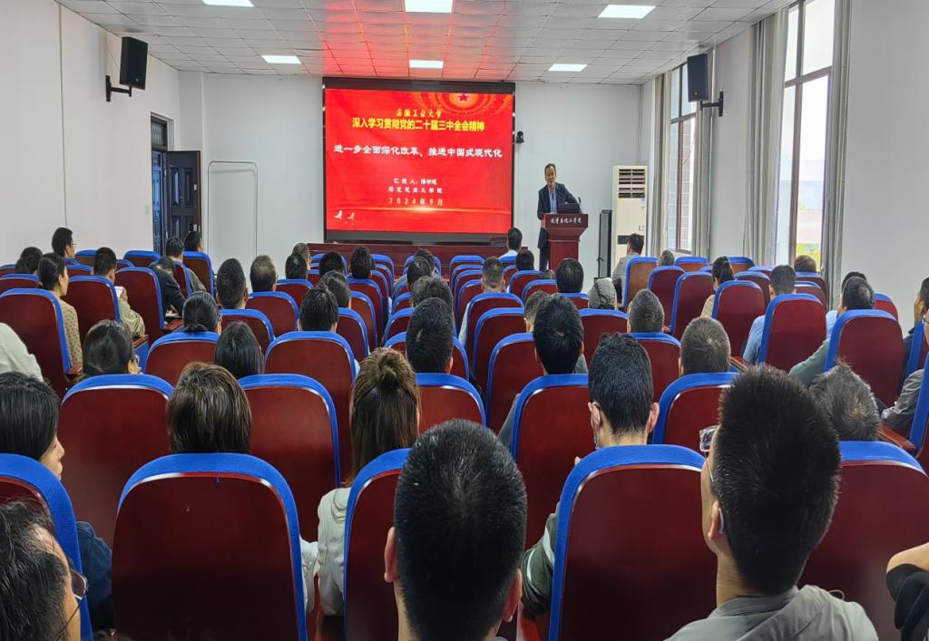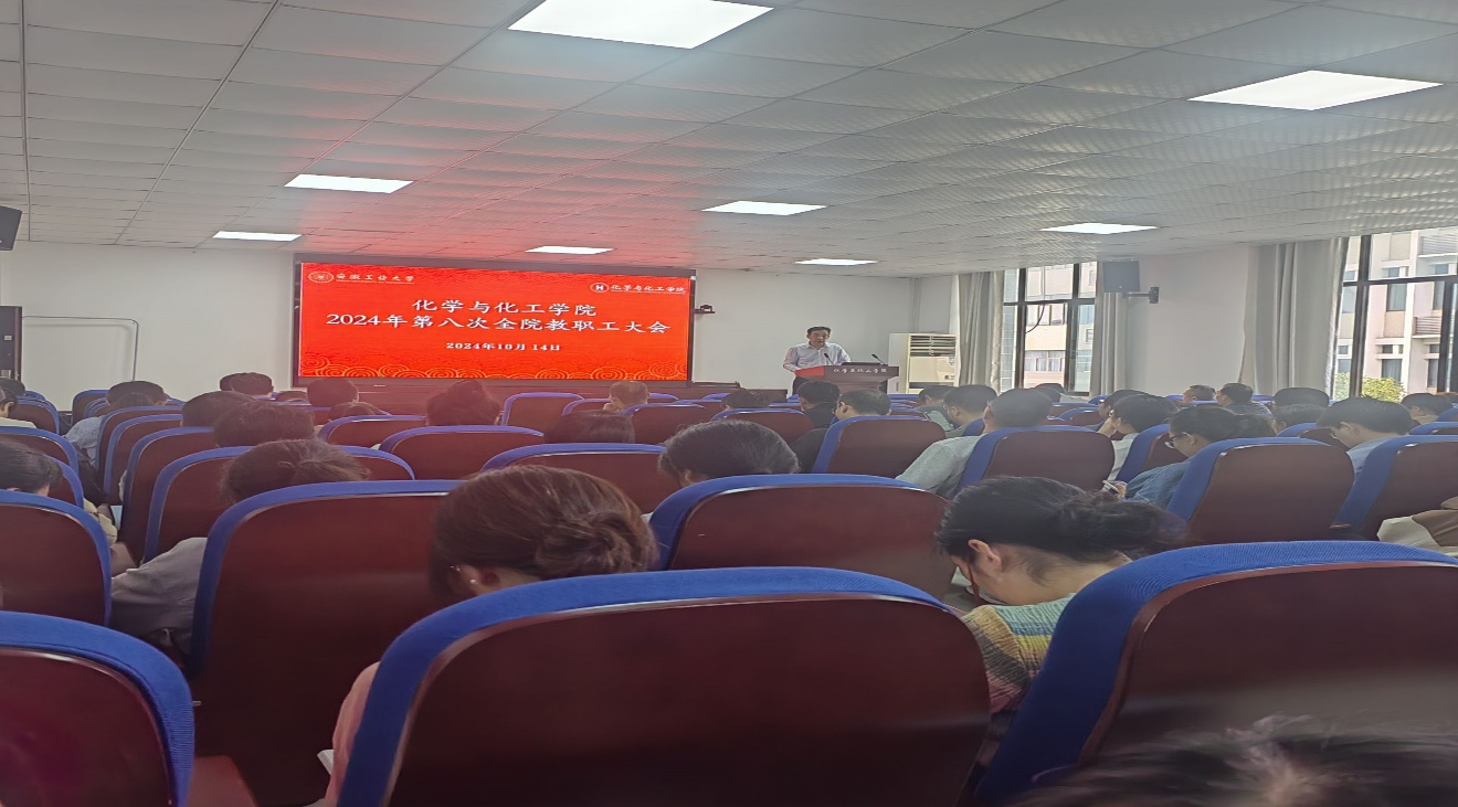 10月14日下午,足球直播360 在化工楼南207报告厅召开2024年第八次全院教职工大会暨学习贯彻党的二十届三中全会精神专题宣讲会。足球直播360 全体教职工参加会议,院党委书记黄宇弦主持会议。