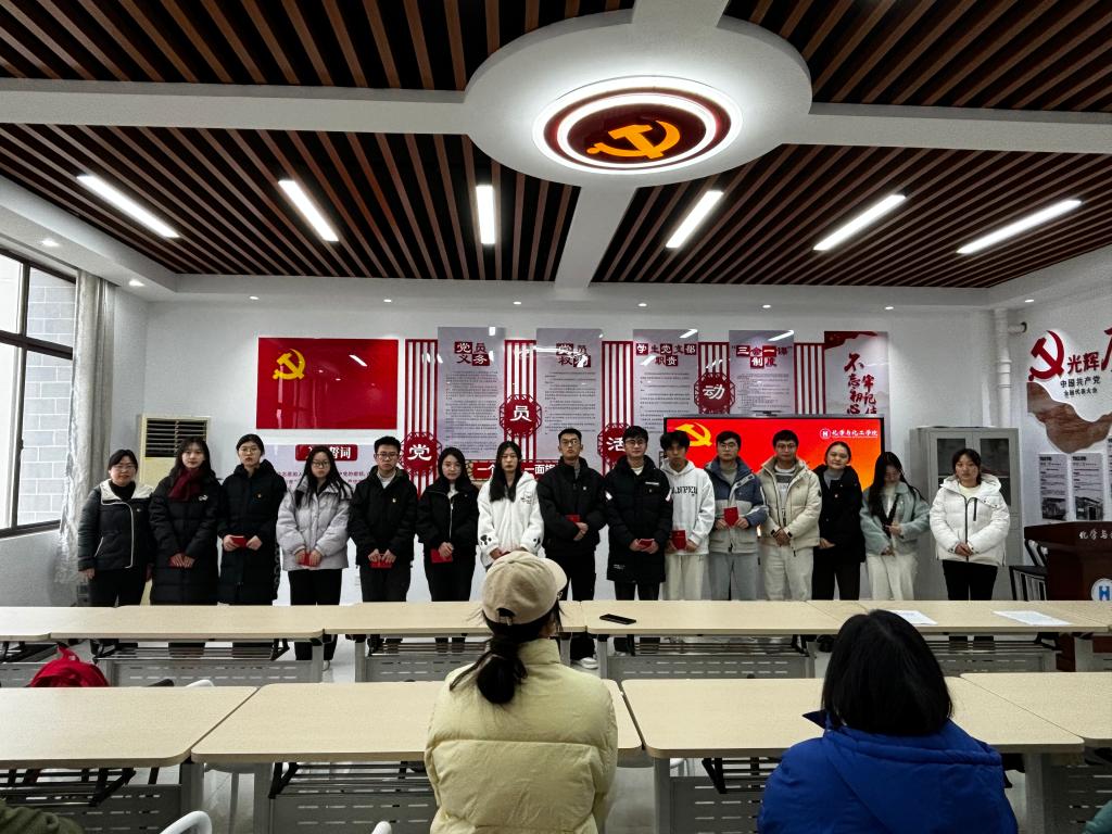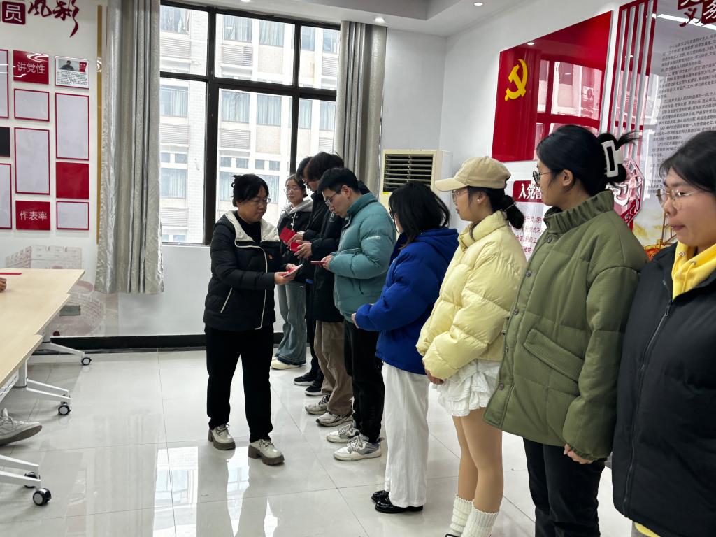 2024年12月24日,足球直播360 2024年下半年新发展党员入党宣誓仪式在秀山化工楼南206党员活动室举行。足球直播360 党委书记黄宇弦、足球直播360 党委副书记、纪委书记、副院长冀秀芝、各学生党支部书记、党员代表及2024年下半年全体新发展党员参加了宣誓仪式,仪式由院分党校班主任朱圣兰主持。