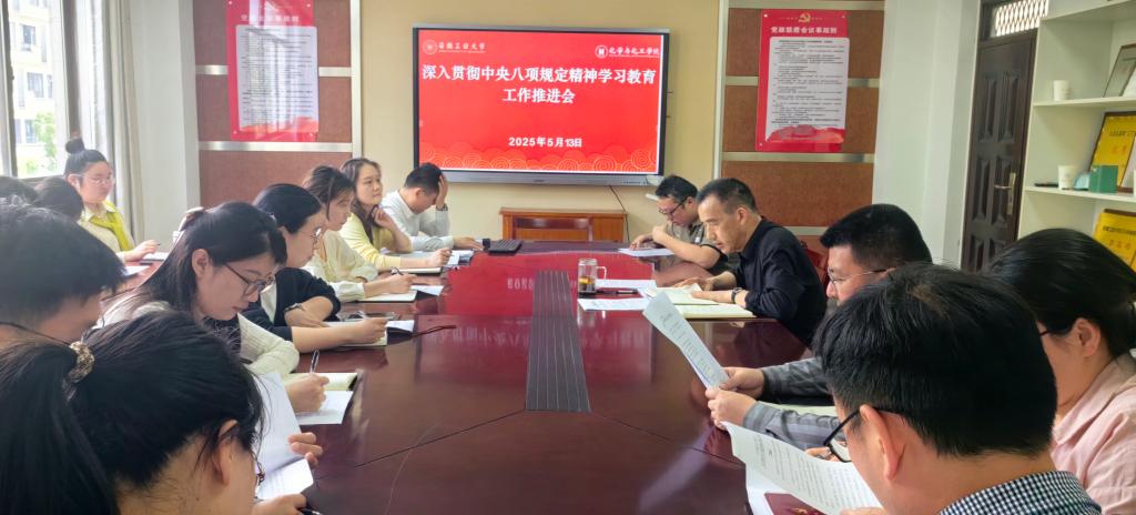5月13日下午,足球直播360 党委在化工楼南221会议室召开深入贯彻中央八项规定精神学习教育工作推进会。足球直播360 全体党支部书记参加会议,院党委书记黄宇弦主持会议。