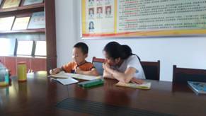 实践队员为孩子辅导功课
